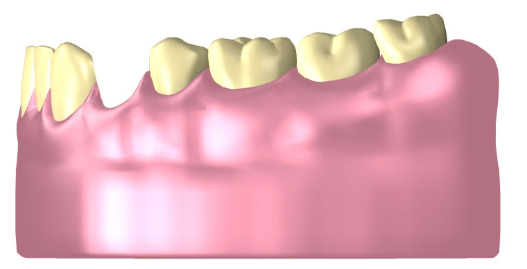 In vielen Fällen ist es auch möglich, den herausnehmbaren Ersatz komplett durch eine festsitzende Brücke auf Implantaten zu ersetzen.